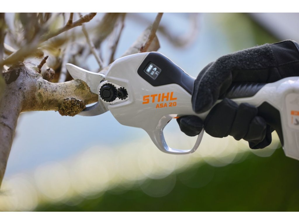 Bateriové zahradní nůžky STIHL ASA 20 jsou určeny pro nenáročné prořezávání na zahradě. Jsou součástí systému STIHL AS, jsou napájeny Li-ion baterií AS 2 a mohou řezat zelený materiál o průměru až 25 mm. Vysoká rychlost zavírání nožů umožňuje uživatelům pracovat efektivně a dokončovat práce mnohem rychleji ve srovnání s používáním standardních ručních zahradních nůžek. Čepele ASA 20 lze nastavit na dvě různé šířky otevření. To znamená, že můžete zrychlit řezání tenkých větviček a větví.