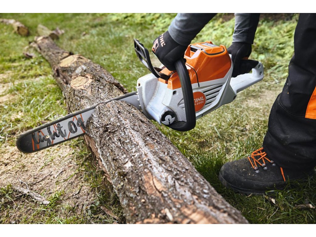 Výkonná akumulátorová řetězová pila STIHL MSA 220 C-B s profesionální řezací soupravou je ideální pro kácení menších stromů, pro ořezávání větví, zkracování a údržbu stromů. Akumulátorová řetězová pila je dodávána s řetězem STIHL 3/8" PS3 Pro s vysokým řezným účinkem a nízkým zpětným rázem. Tento pilový řetěz s plně dlátovými zuby se vyznačuje vynikajícími vlastnostmi při nasazování a vysokou kvalitou řezu. S motorovou pilou STIHL MSA 220 C-B můžete pracovat i na místech s přísnými hlukovými limity, a to jak v rámci péče o zahrady a zeleň, tak i v řemeslných provozech. Při výstavbě ze dřeva budete profitovat z tichého chodu bezemisního motoru EC s nízkými nároky na údržbu, a to i v uzavřených prostorech.