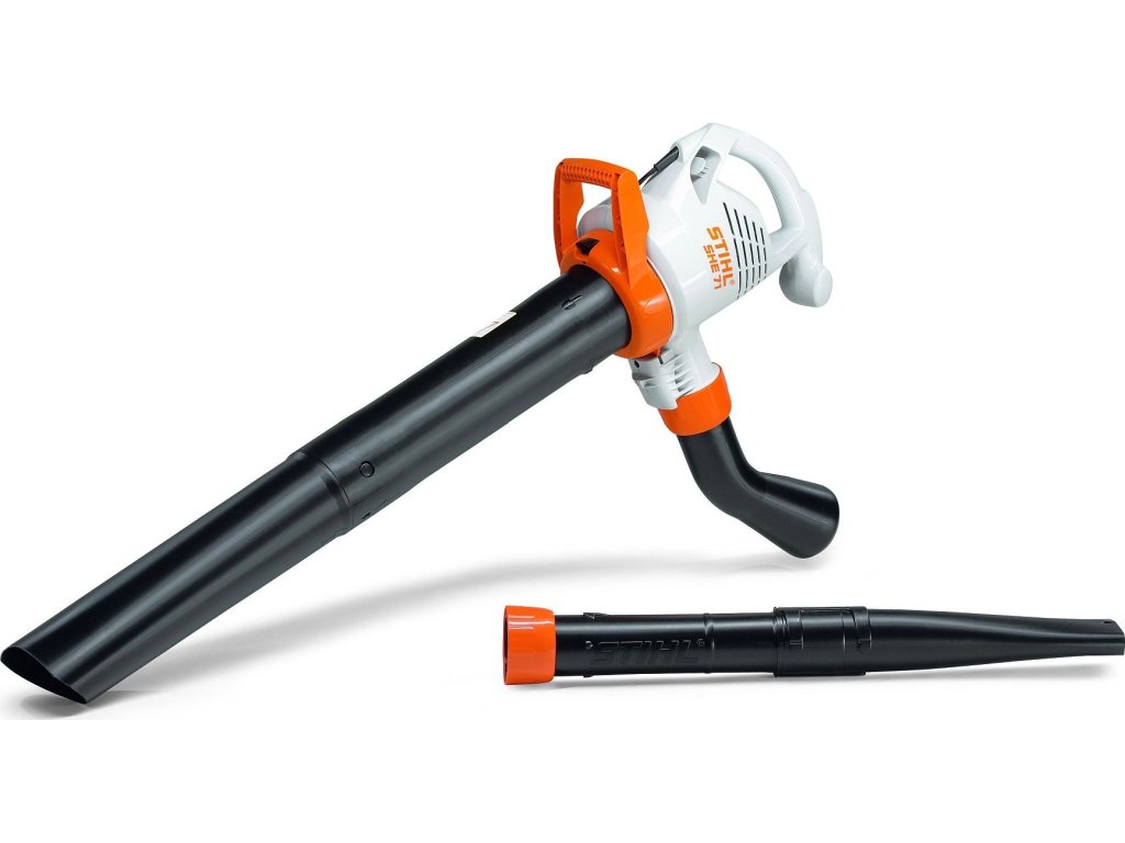 Elektrický vysavač SHE 71 lze standardně používat také jako foukač, takže můžete rychle odstranit popadané listí a nečistoty. Přepínání mezi režimem sání a foukání se provádí bez použití nářadí. Foukač listí je standardně vybaven plochou tryskou. Pro ještě vyšší účinnost při použití v blízkosti země můžete dodatečně namontovat zakřivenou plochou trysku. Pro použití na okapy je k dispozici také volitelná sada STIHL na čištění okapů, pomocí níž lze odstraňovat nečistoty a listí.