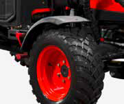 vybavena 2 rozsahy. Snadné ovlá- vybaveny 12 V zásuvkou a 2 USB bavit čelní vývodovou hřídelí. přednímy natáčecími blatníky, které
