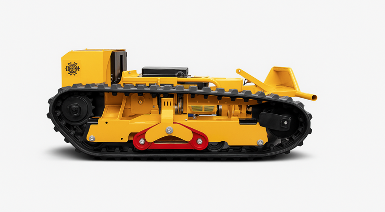 Stabilní housenkové pásy poskytují maximální trakci na strmých svazích. Montáž pásů je rychlá díky integrovanému systému rychlého napínání a definovanému nastavení pro přesné napnutí pásu. Automatická, mechanická parkovací brzda přináší dodatečnou bezpečnost při práci ve svahu. Se svými kompaktními rozměry 140 cm / 120 cm / 62 cm lze dálkově ovládanou sekačku snadno a rychle přepravovat.