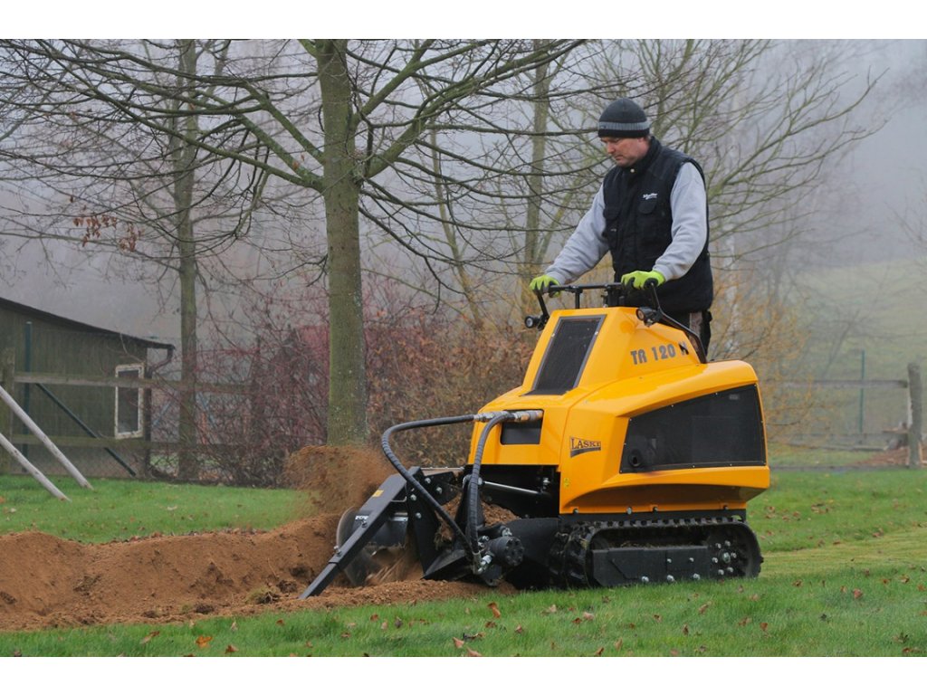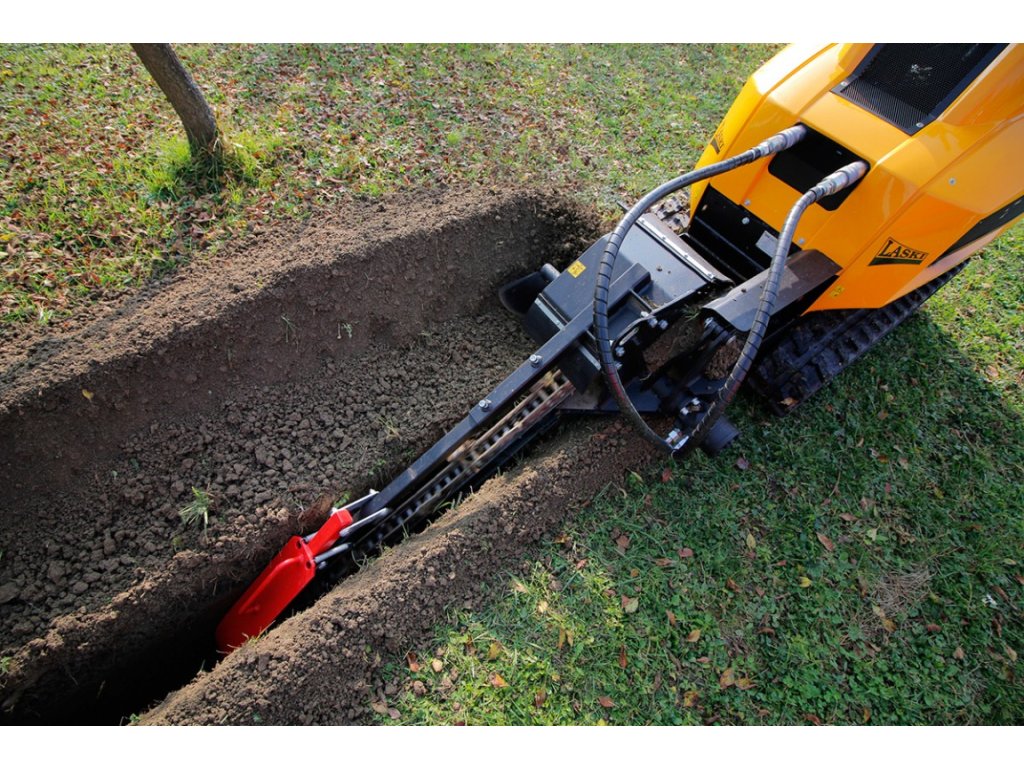 Laski TR 120 H je drážkovač, který vytváří v půdě různého složení drážku do hloubky 120 cm o šířce do 20 cm. Drážkovač je vybaven připojovacím modulem pro zahrnovací radlici. Celková šířka stroje je 870 mm a jeho kompaktní provedení umožní práci v omezených a hůř přístupných prostorech.