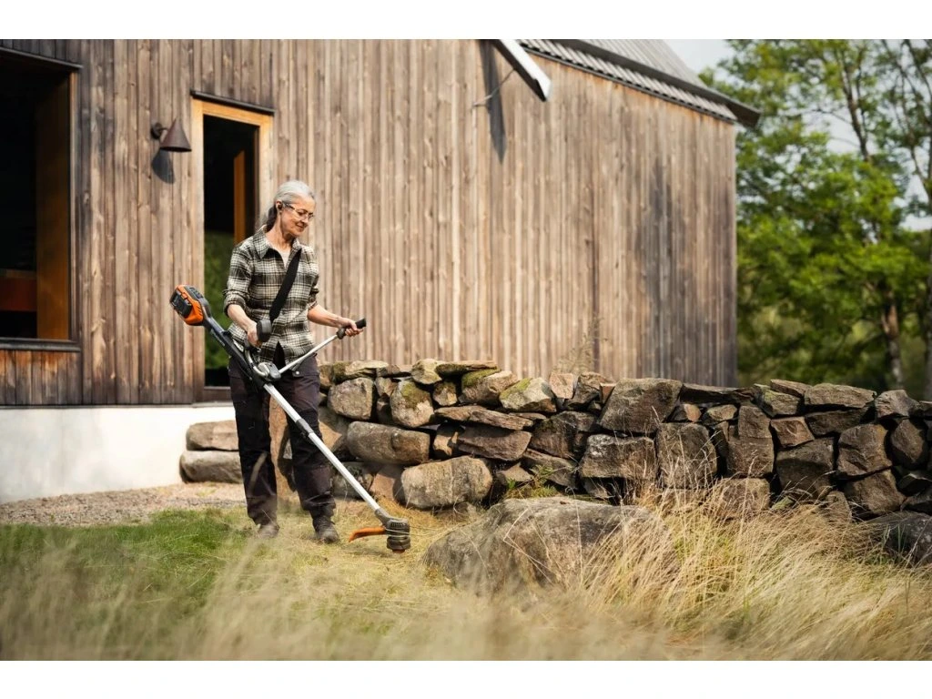 Díky teleskopické hřídeli a sklopným řídítkům lze vyžínač zmenšit až o 70 % pro snadné skladování a přepravu. Chytrá svorka umožňuje rychlé a snadné složení a seřízení řídítek.